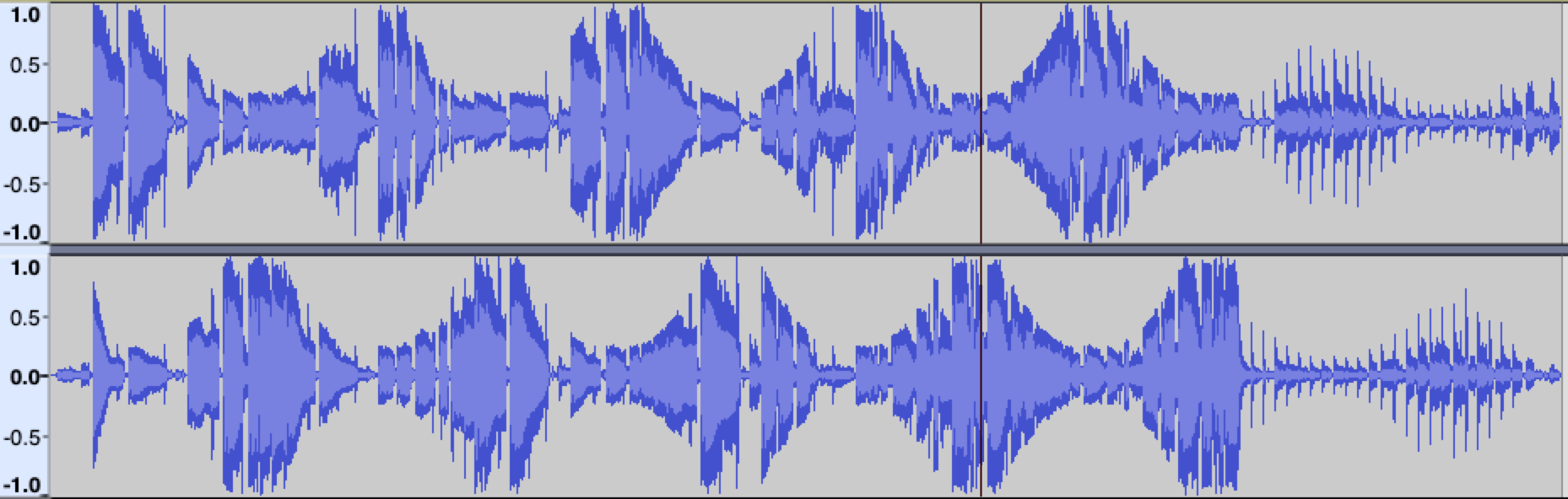 Initially, I attemted to open up mp3/wav datafiles. With mp3's compression, that was a nightmare. Wav files are uncompressed, but reading their data was very difficult. The next plan was to create a plug-in that could be applied to audio files in audio manipulation softwares such as Audacity. I decided not to pursue this becasue of the limited documentation and instead found python and the pydub library.