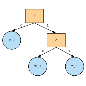 Following this tree, the letters of "test" will be encoded as follows: